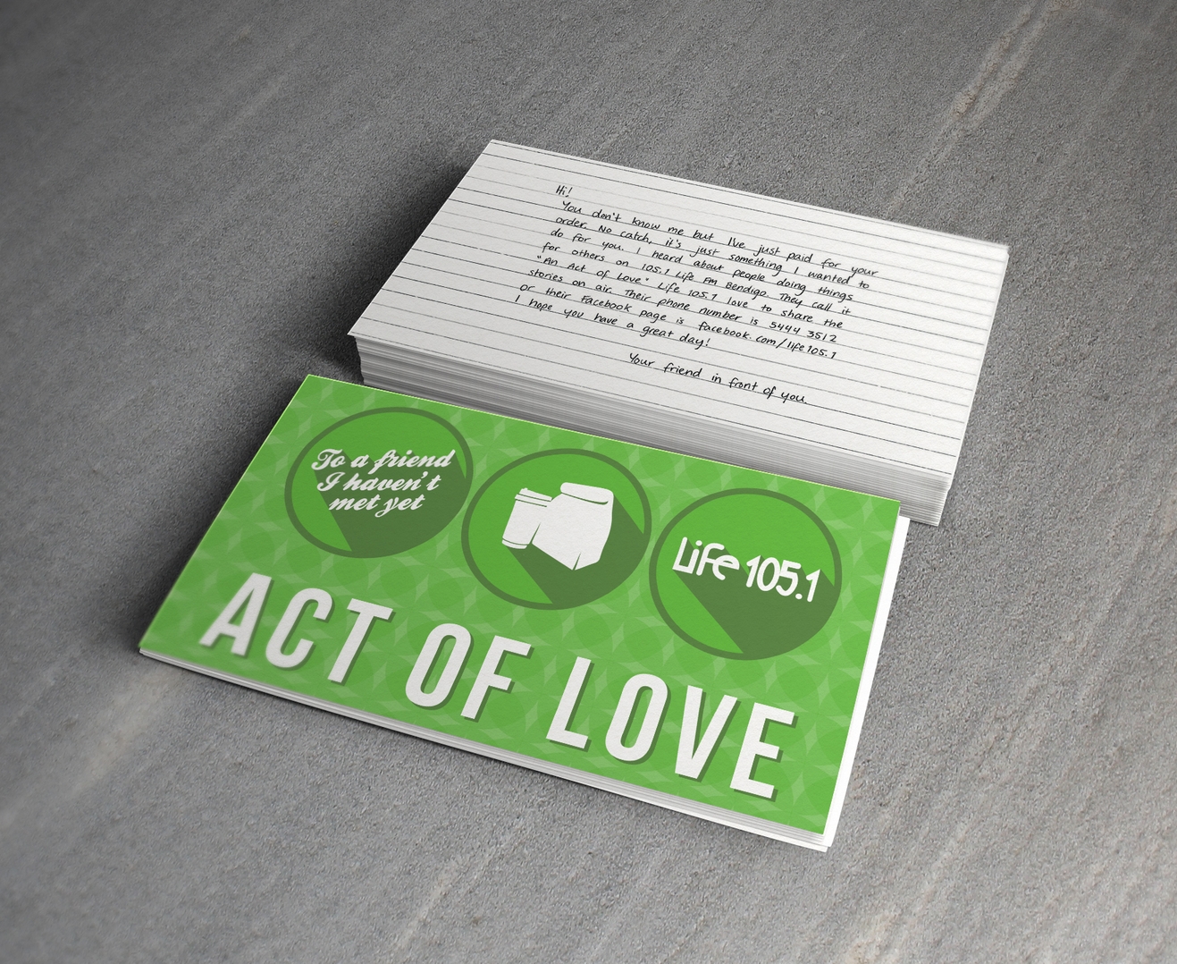 Postcards to be used for a local radio station initiative.