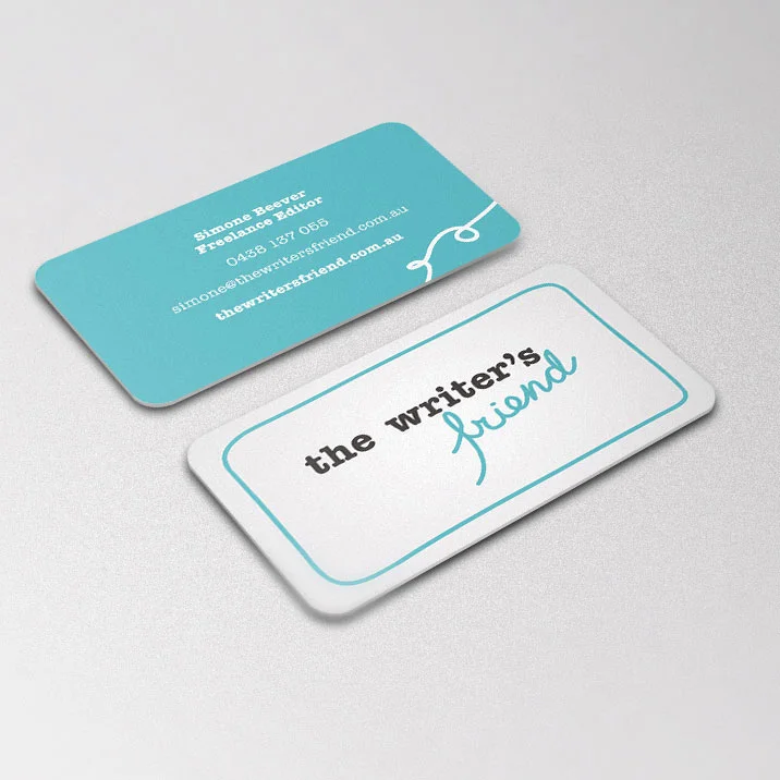 Rounded business card design for The Writer's Friend.