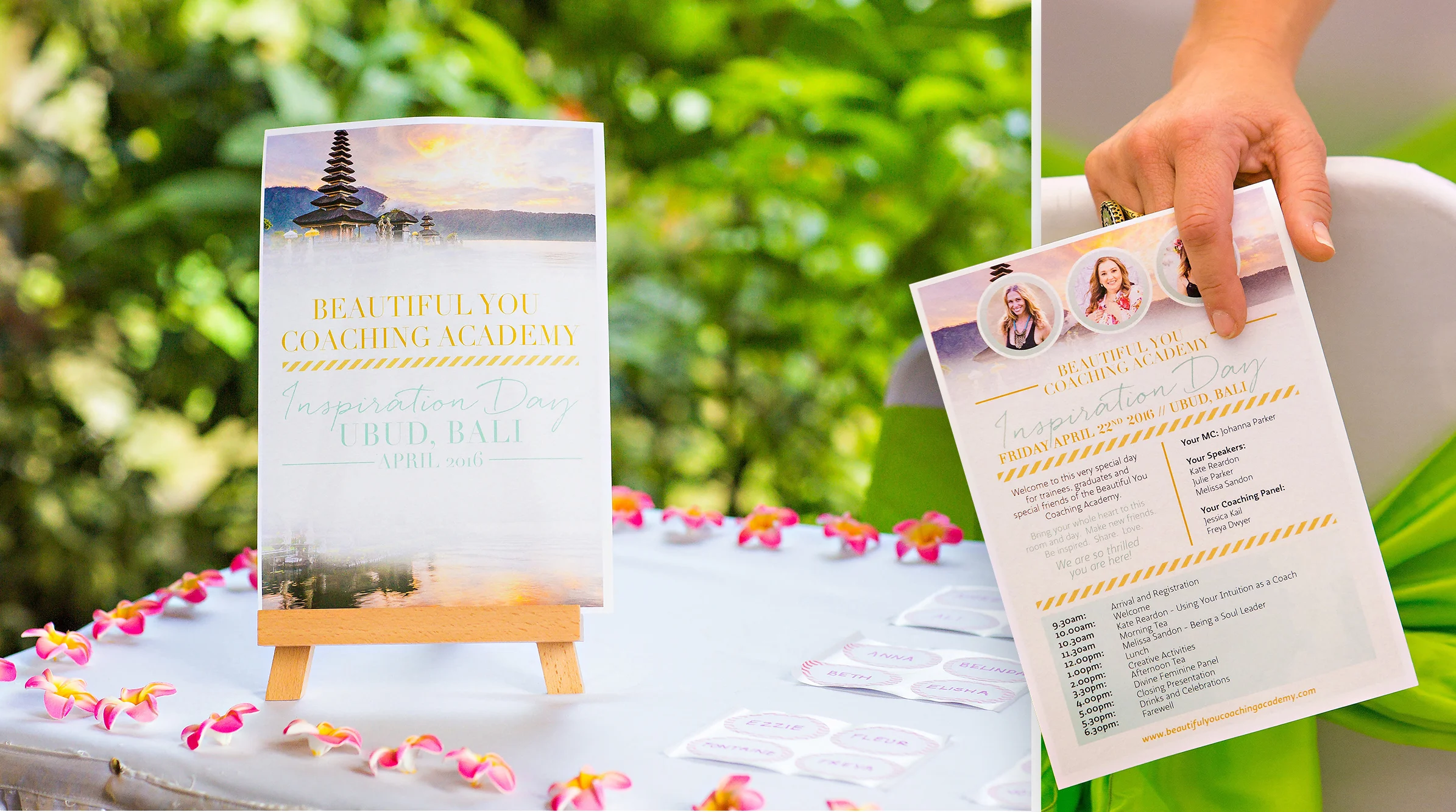 Itinery and welcome poster for Beatiful You Coaching Academy's Inspration Day.